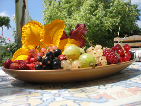 Carpe Diem : Beaucoup de rosiers et de vivaces, chambre de verdure, points d'eau, jardin naturel, fruitiers, arbustes à baies attirant les oiseaux. Potager. Pas de traitements phytosanitaires.